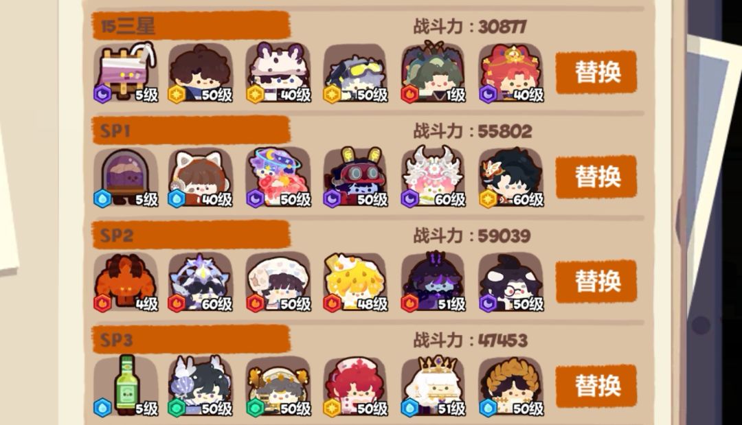 (SP1最后一个人是战队教练,SP2中间的人物是西瓜棒冰,宠物是每回合恢复百分比血量的奶宠,这个特别稳,而且通关速度还快,抄不了的不要勉强自己,不妨看看下面的替换方案)