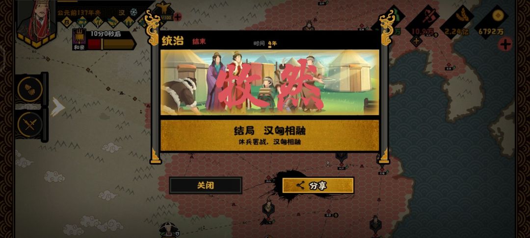 达成条件:完成所有和亲任务,并最后两个月内不对外进攻触发