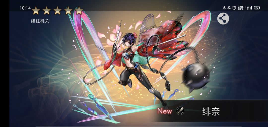 绯奈,可算是让我逮住你了!斩池花了一万+的砖石可算是给你抽到了,真心不容易,因为这池子10000+砖石下来我一共也就抽到了两个五星,而且这俩五星都是最后一个十连出来的,之前屁都没有。