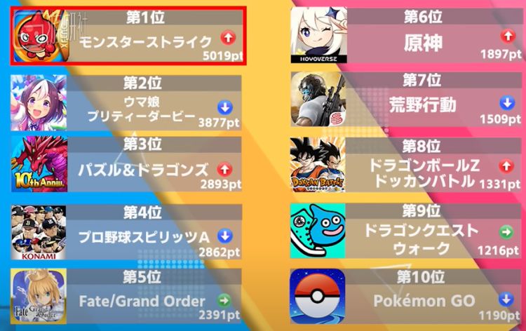 日本2022上半年手游营收榜上,《赛马娘》仍能位居第二