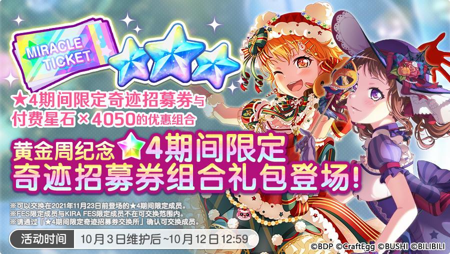 ※「★4期间限定奇迹招募券」可在「★4期间限定奇迹招募券兑换所」中兑换2021年11月23日前登场过的★4期间限定成员,且不可兑换2021年12月28日以后登场的期间限定成员。