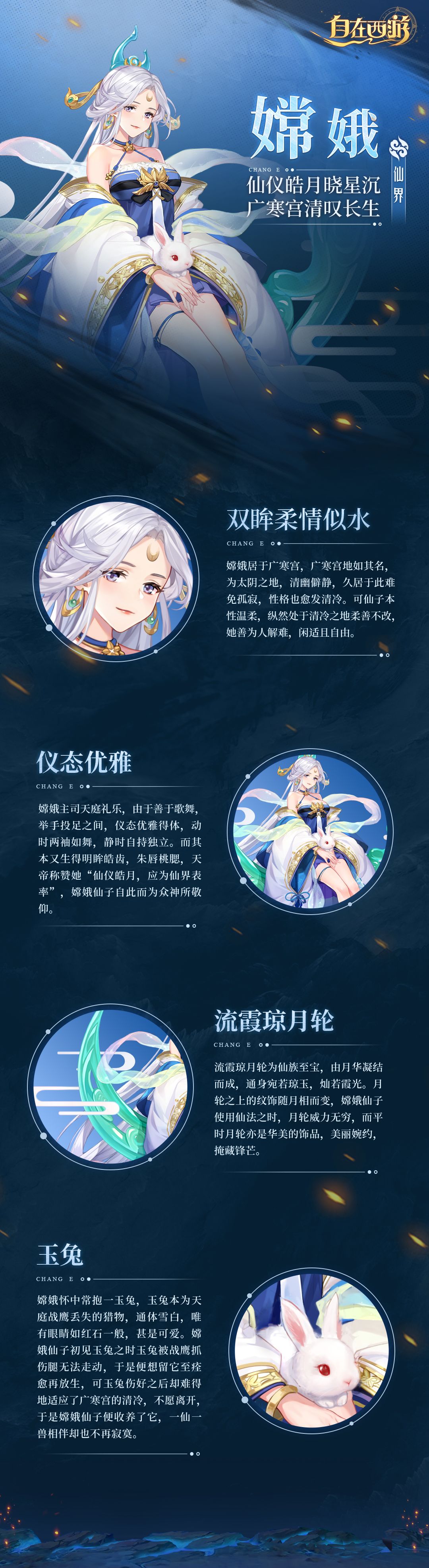 嫦娥仙子,深居月府广寒宫,天帝亲封“仙仪皓月”。