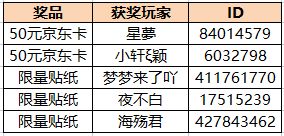 当参与人数超过30人时,我们将抽取2位幸运玩家分别送上“50元京东卡”一张、抽取3位幸运玩家分别送上限量贴纸各一张。