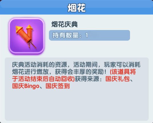 烟花庆典期间,旅行者可以通过国庆bingo、国庆礼包、国庆签到中获得烟花。旅行者消耗烟花可以在烟花庆典中得到奖励。