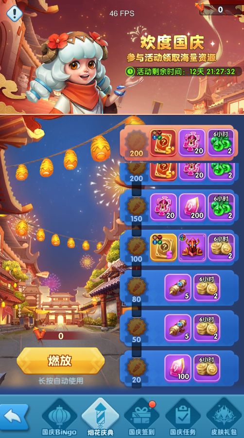 烟花庆典期间,开放灯笼收集,消耗灯笼解锁bingo可以获得丰厚奖励。