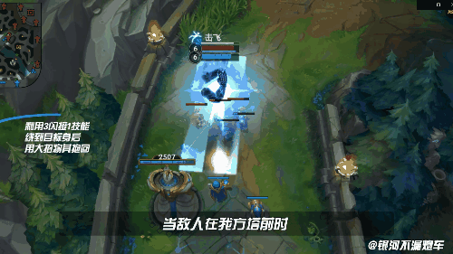 对线期,当我方打野来GANK时,我们就可以利用这个技巧,远距离拉回敌人,配合打野完成击杀。