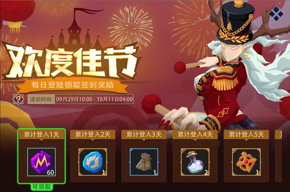 活动内容:全民齐乐,欢度佳节。活动期间,每日登录游戏即可领取对应奖励。