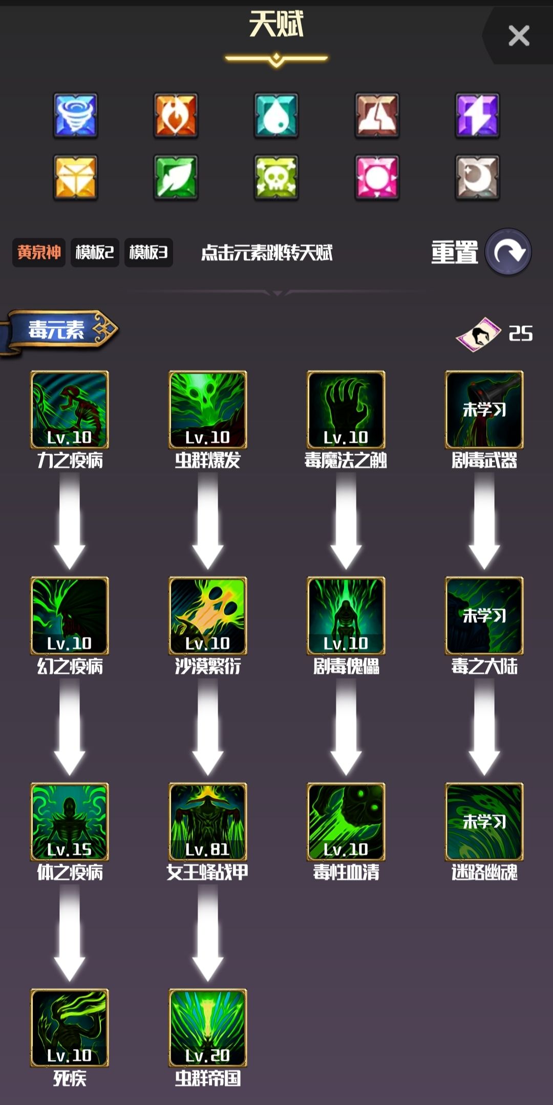 自己配合每种元素的天赋树,需要天赋点才可以升级。很多玩家觉得这里比较肝。。