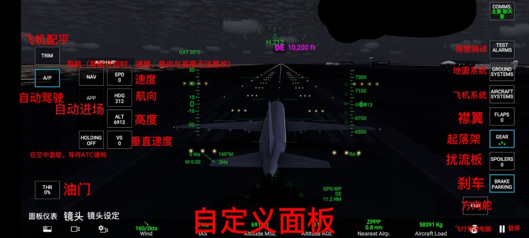 轻触“火灾紧急情况”(FIREFIGHTING VEHICLE )后,消防车会到达飞机附近,并且面板上会出现“EXTINGUISHER”按键,轻碰“EXTINGUISHER”释出灭火药剂。