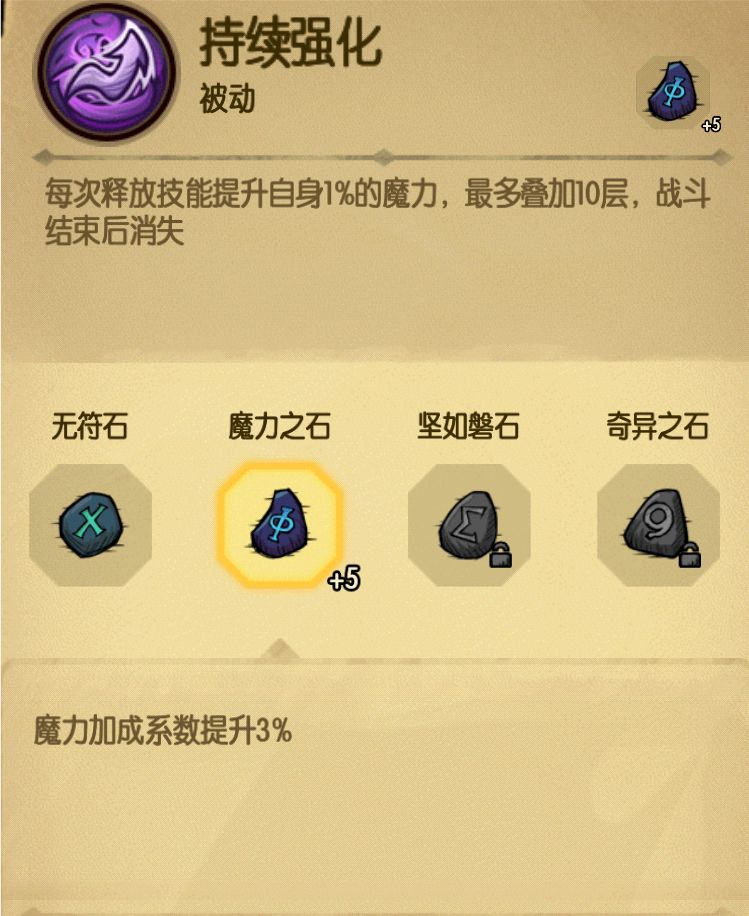释放一次技能将提升(1%+3%)的魔力,上限10层。