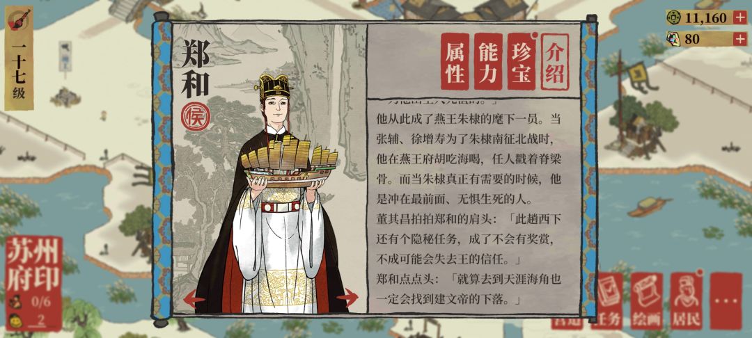 贴这两段简介的意思也比较明确,我们能从生卒年份中直观的看到,尽管汪直与郑和都是在明朝活跃的人物,但在郑和先生去世约130年后,我们的汪直先生才终于得以呱呱坠地。而三保太监脑海中浮现的十年前也让人摸不着头脑究竟是怎样时间点的十年前。如果非要一个解释的话,大概只能说是百景图宇宙中的时间点吧。但与此同时,郑和背景故事中的时间点却反常地十分明确,我们来看背景故事中的具体段落。