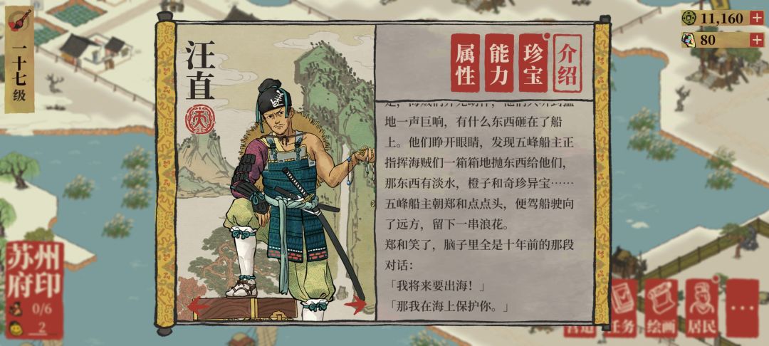 无疑,江南百景图有着一个宏大的故事背景,而且选角眼光独特。虽然我们能大概看出,以主角文征明为中心,百景图的主要出场角色大部分都来自我们天下无敌(x)的大明。由于出场角色的时间跨度很大(甚至空间跨度也很大),在角色的背景故事中出现一些跨时空的案例也算是百景图特色之一,比如李师师背景故事中提到的建文帝和杨玉环就是一个鲜明的例子。关公战秦琼这样的跨作品拼战力或者是跨作品拉郎配大概是从老祖宗那里就流传到我们身上的非物质文化遗产之一,我对此不说追捧热爱但也算是饶有兴趣,但即便如此我依旧在汪先生的背景故事这里头痛了起来。