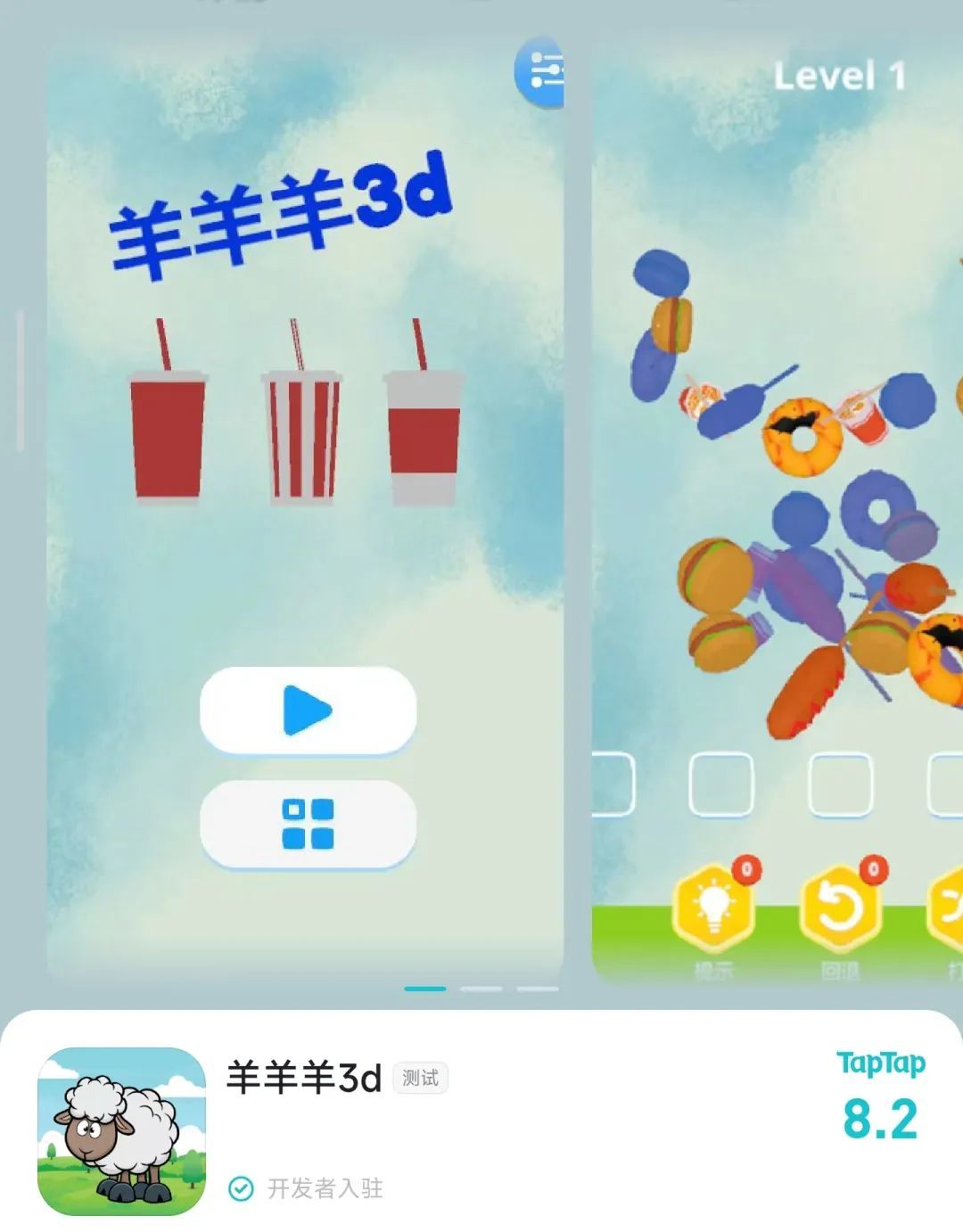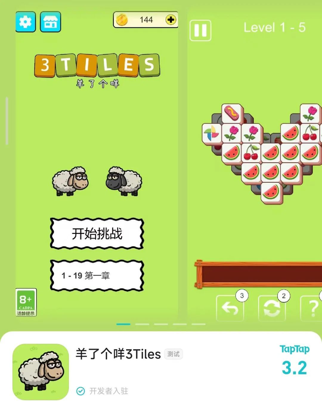 可能是觉得这样蹭还不够,有丧心病狂的开发者直接把《3 tiles》和《羊了个羊》缝合起来,属实是玩明白了: