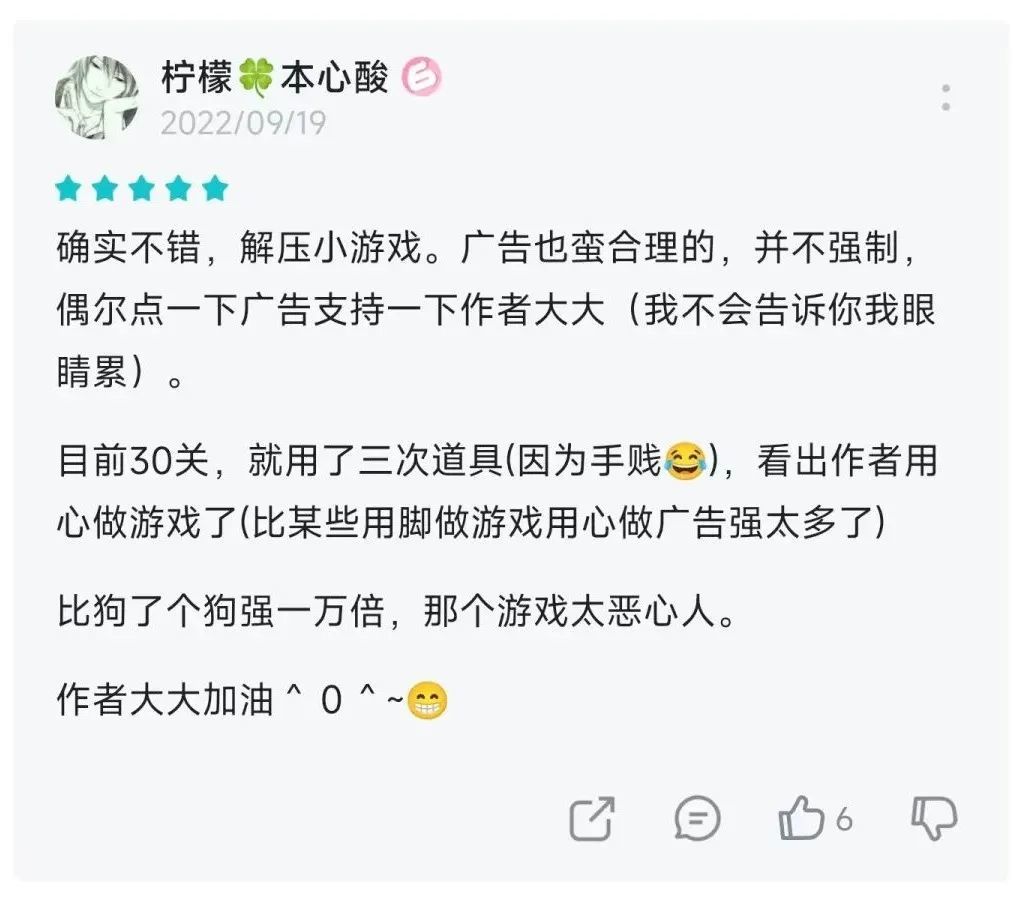 而另一款其实比《羊了个羊》上线更早,制作也更加精美的《三三消除》,也得到了玩家“报复性好评”。