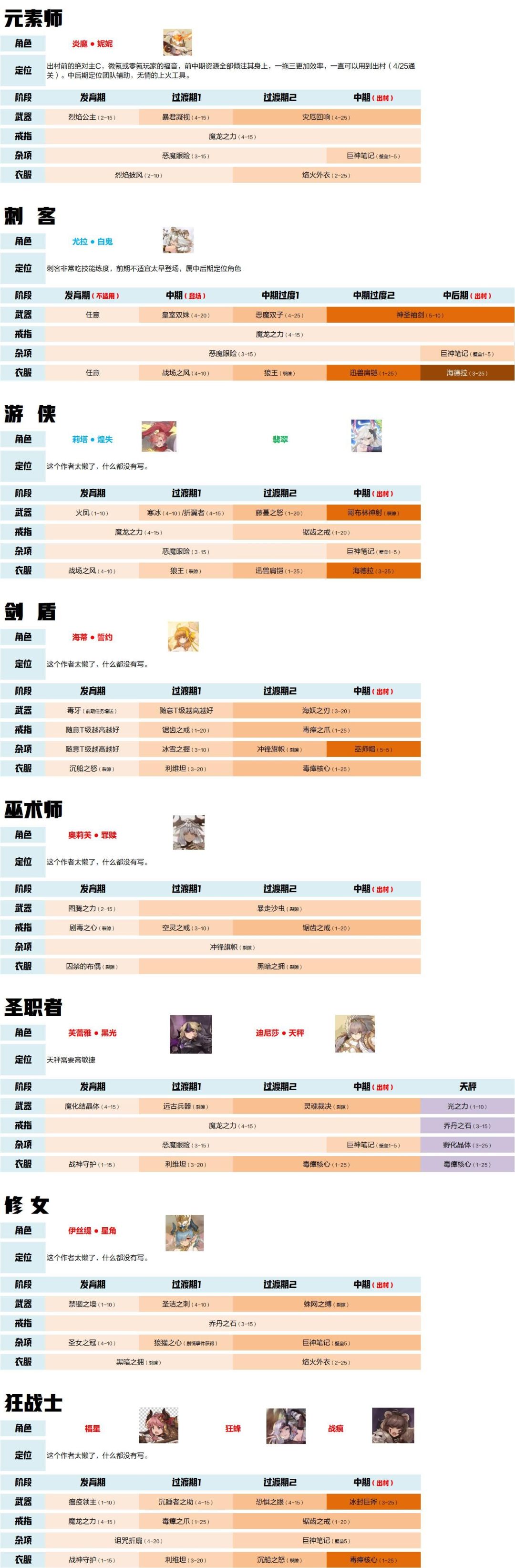 关于新手期(巨神之前)全职业装备更替图解
