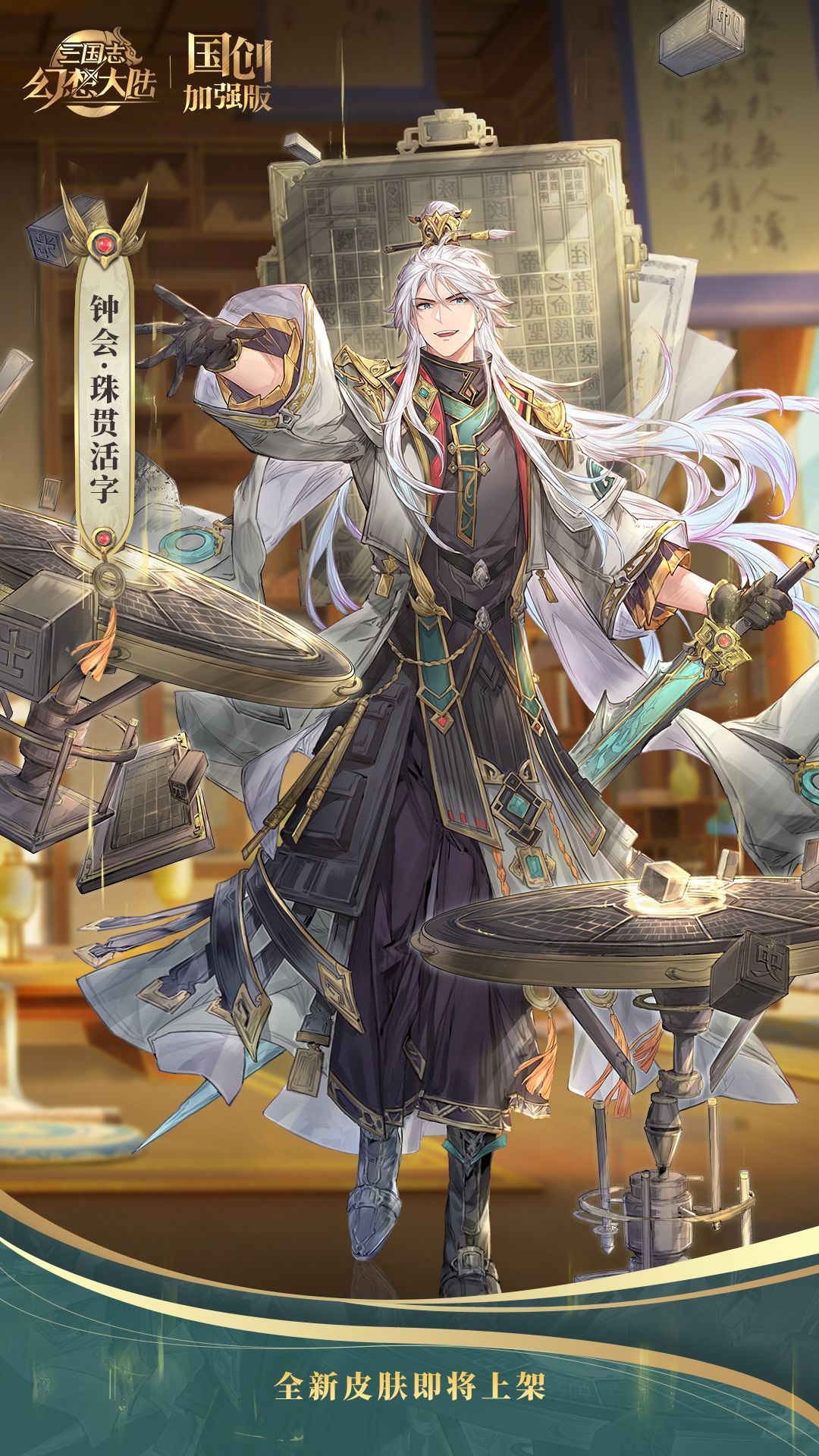 珠贯活字,流芳百世,果果又来爆料了!10月的月雅集皮肤给到了钟会,新皮肤会在10月1日与月雅集同步上线!今天先来欣赏一下这款全新的皮肤:钟会——珠贯活字。