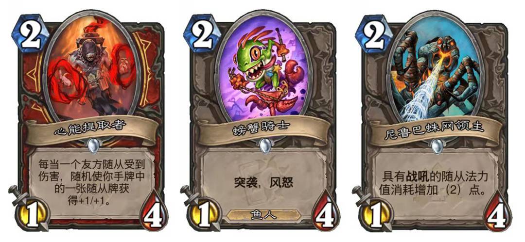 ·城镇公告员:激怒战少有的1费优质随从,最理想情况是检索螃蟹骑士,前期也可充当艇长的弹药打AOE,中期作为多余的费用润滑剂,灵活好用。