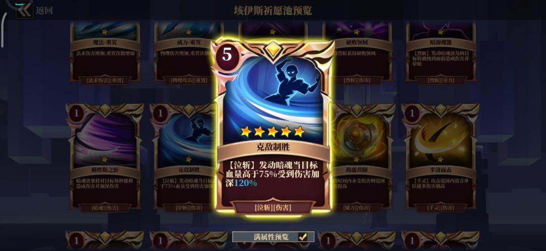 ○克敌制胜:虽然有目标限血量制,但深渊BOSS硬在护盾,真血也就那样。