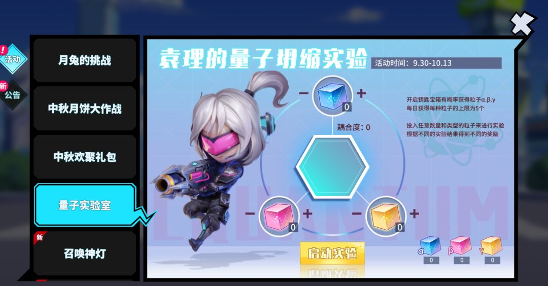 活动内容:战斗家们投入任意数量三种粒子启动实验,按实验结果获得相应奖励