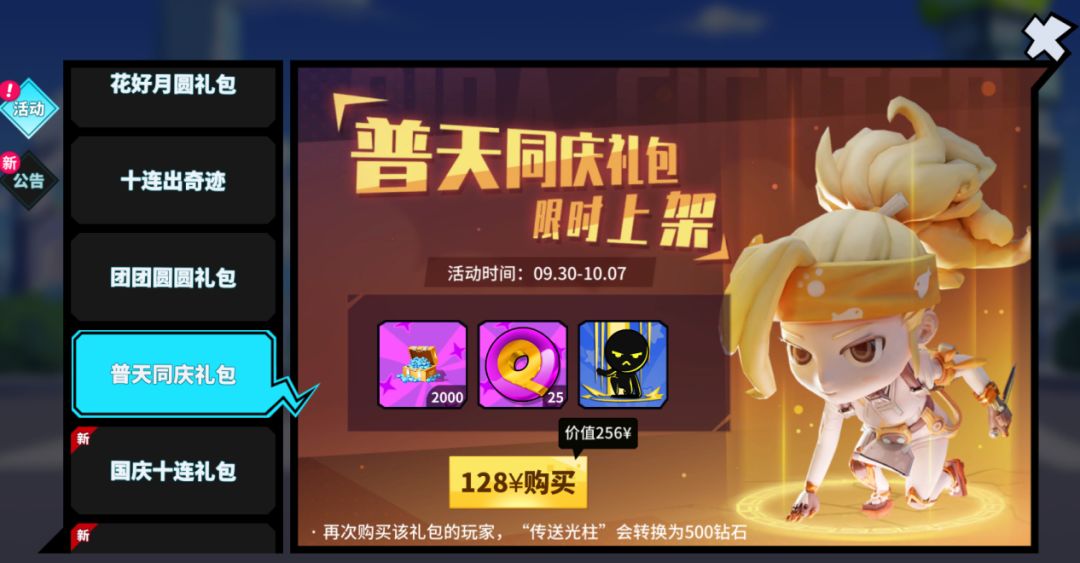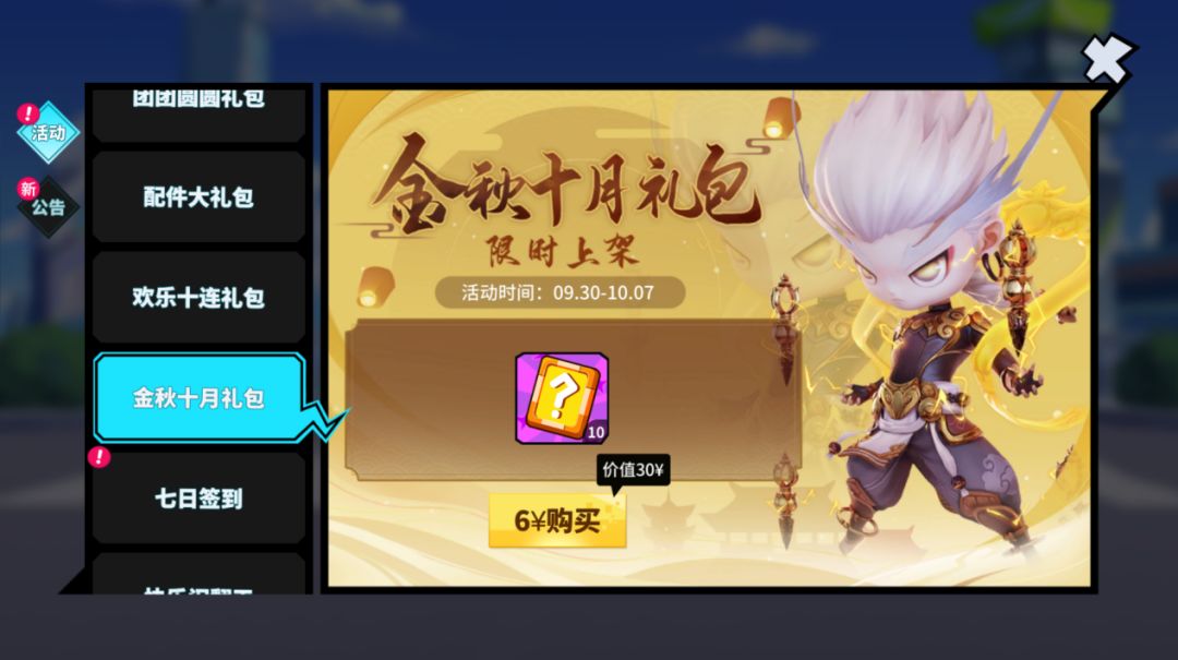 活动内容:假日礼包(分三档)限时售卖