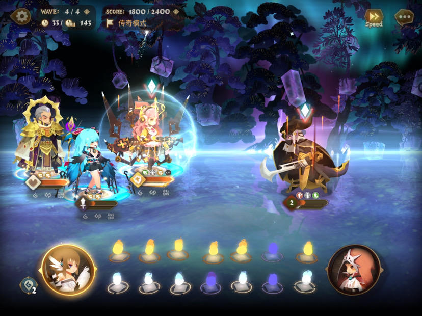 打法:每一面开局需要白1上嘲讽,触发金1上减伤,金2上强化,触发参谋无限金1叠盾,后续只要消金2一直保持月箱效果,玛利亚待机状态消白1叠嘲讽,白2叠减伤,或者消黑魂挂弱化。