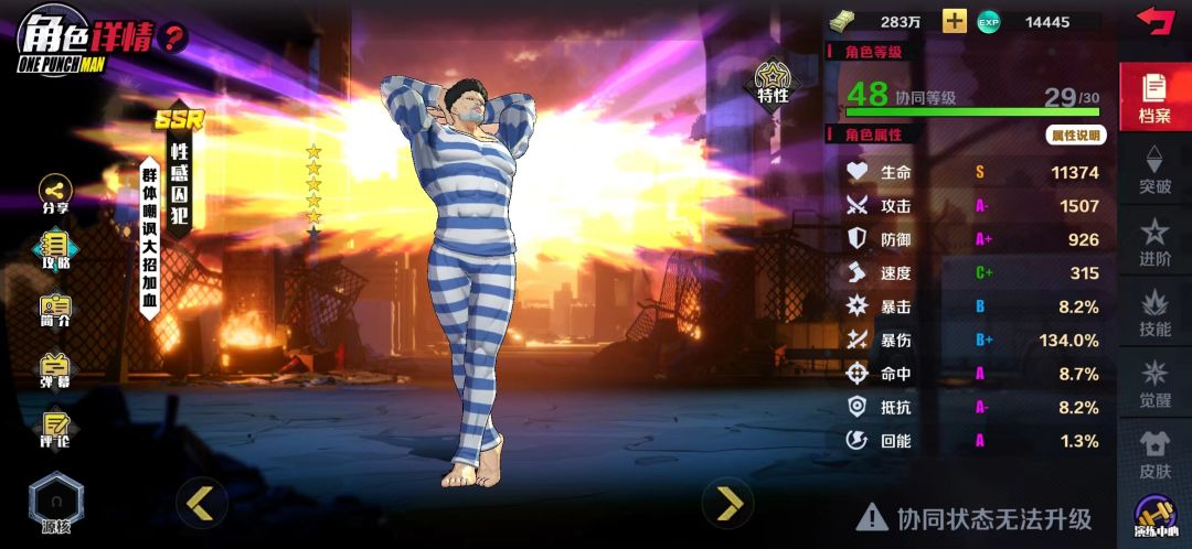 在《一拳超人》中,性感囚犯虽居S英雄末位,却也有硬撼龙级的实力,肌肉猛男的外表与性感妖艳的人格形成了巨大反差,让人又爱又恨。在游戏中,他定位辅助,拥有所有英雄中最全面的技能组,出场率不低。本篇文章,就来聊聊这个英雄,说说他的阵容组建。