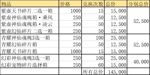 推荐购买:紫虚所有物品、青耀天书(新区可以加上青耀幻仙)