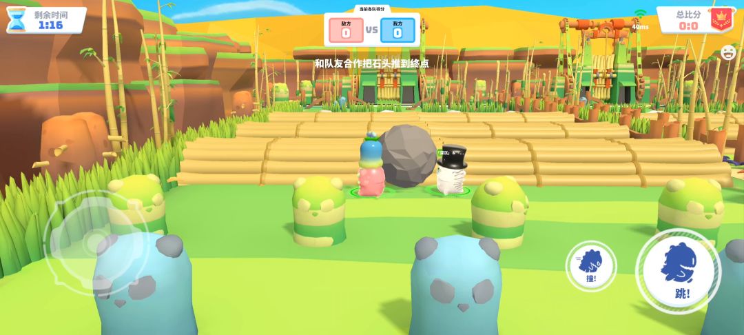 在这一关卡里,与小伙伴一起合作,把石头推到重点,先抵达的队伍获胜哦~