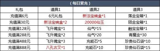 【活动简介】活动期间,每日累计充值达到指定金额即可领取相应好礼。