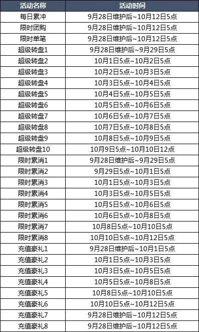 【活动时间】9月28日维护后~10月12日5点