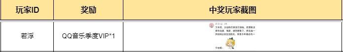 恭喜这位音乐人大大获得QQ音乐季度VIP*1,请于11月25日23:59前,私信莉莉安提供具体信息即可,逾期视为放弃奖励,莉莉安会在30个工作日内发放奖励,请大家务必耐心等待哦~