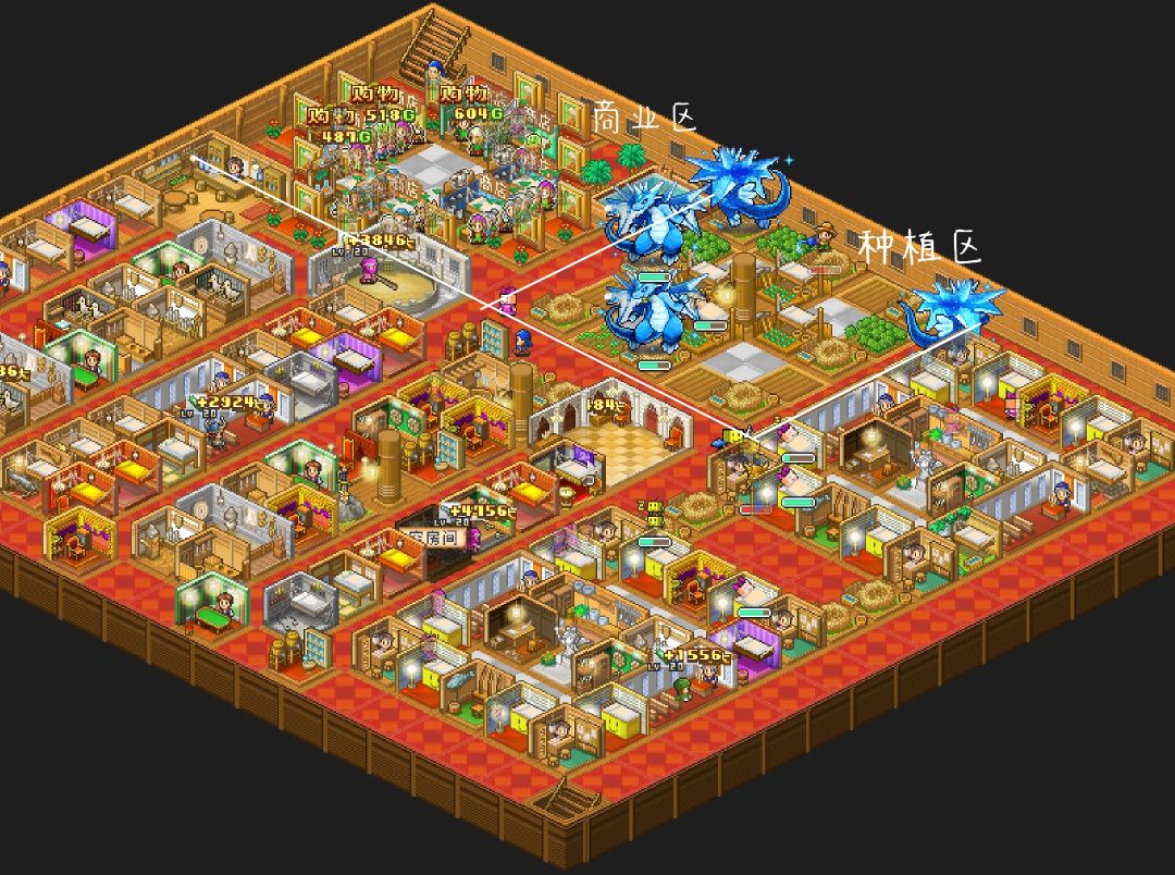 商业区|8个工具人转职商人/铁匠,如上布局。