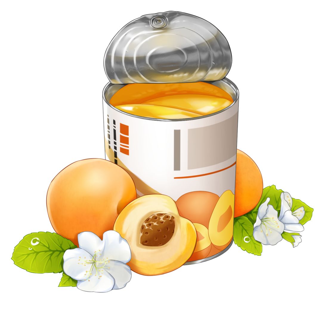 黄桃罐头之所以甜美,是因为做出罐头的人们怀着甜美的愿望呢~能够带来幸福的水果被装进了玻璃罐子里,于是幸福与快乐也变得可以传递了。