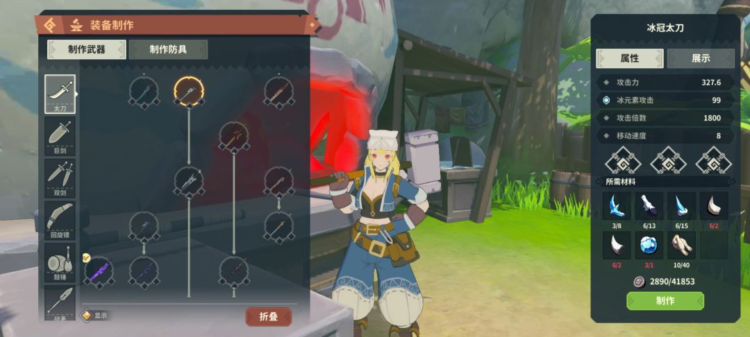 9星冰刀 有进化不浪费票嘛,这里为啥不做岩猩猩刀是因为我破不了背,什么材料都集齐了就是没有背做武器,看你自己选择