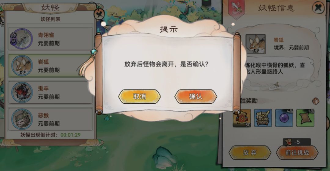 除了主线外,所有自动刷新出来的秘境&妖怪都是可以自主放弃的!