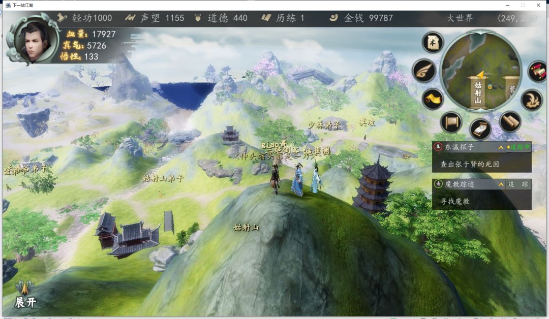 地图上大部分NPC的去向是:天涯阁、雪山、北城、太岳,蓉城和杭城刷出来的商人和游侠一般是去往前三个地点,所以百瑶消息刷新了只需要跑到两城之间的高山上(下方附图),查看NPC位置即可,需要注意一点“天涯阁”离两城很近,如果不快点,商人直接进去了。
