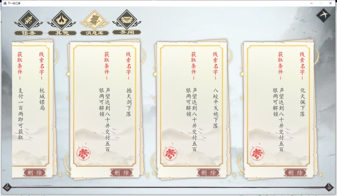 洛城隋都古城百瑶那个大地图的宝物消息,其实不用触发了然后屁颠的去洛城接消息,在大地图看到消息刷新了,直接去附近的制高点,找大地图上刷新的NPC,无外乎就是行走的商人和神秘高手。商人一般是在蓉城刷和杭城新出来,神秘高手我没注意大概是在剑宗附近吧(反正我刷出传闻,他已经在剑宗旁的路上了),商人装备大多是小白飞刀和一些橙色红色丹药(别看消息里说的憾天刀,八蛟袍,那都不一定能刷出来,概率很低,大多是小白飞刀,贼坑)。