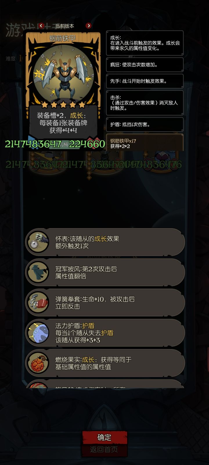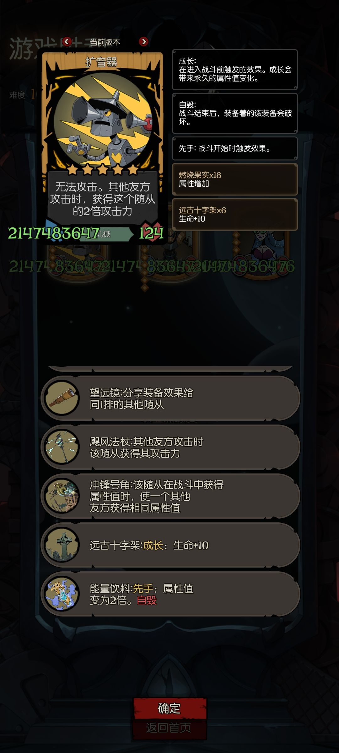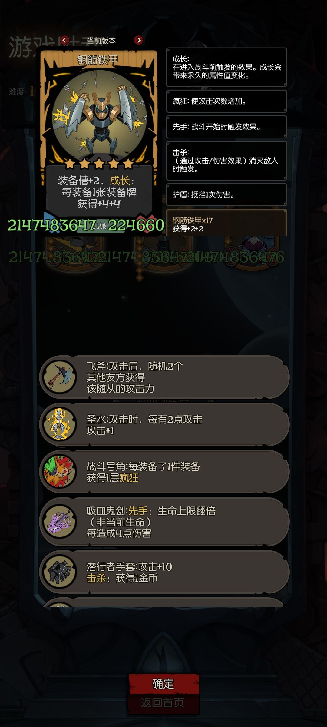机械核心是钢筋铁甲,每一件装备可以永久+2,可以当后备,到了5星可以抽到,不需要什么强制的东西,有个吸血剑,有个圣水,就可以顺利通关,起步可能会慢,需要3个开局,属相到了60以后,稳稳的可以单过。要刷属性,可以买个扩音器,友方攻击时附加本角色攻击,只需要一个飓风法杖就可以叠好高好高的属相了😍,当然,也可以配合幽灵或者其他可以召唤的流派,每次攻击哪怕是一星卡牌也可以打出爆炸伤害。