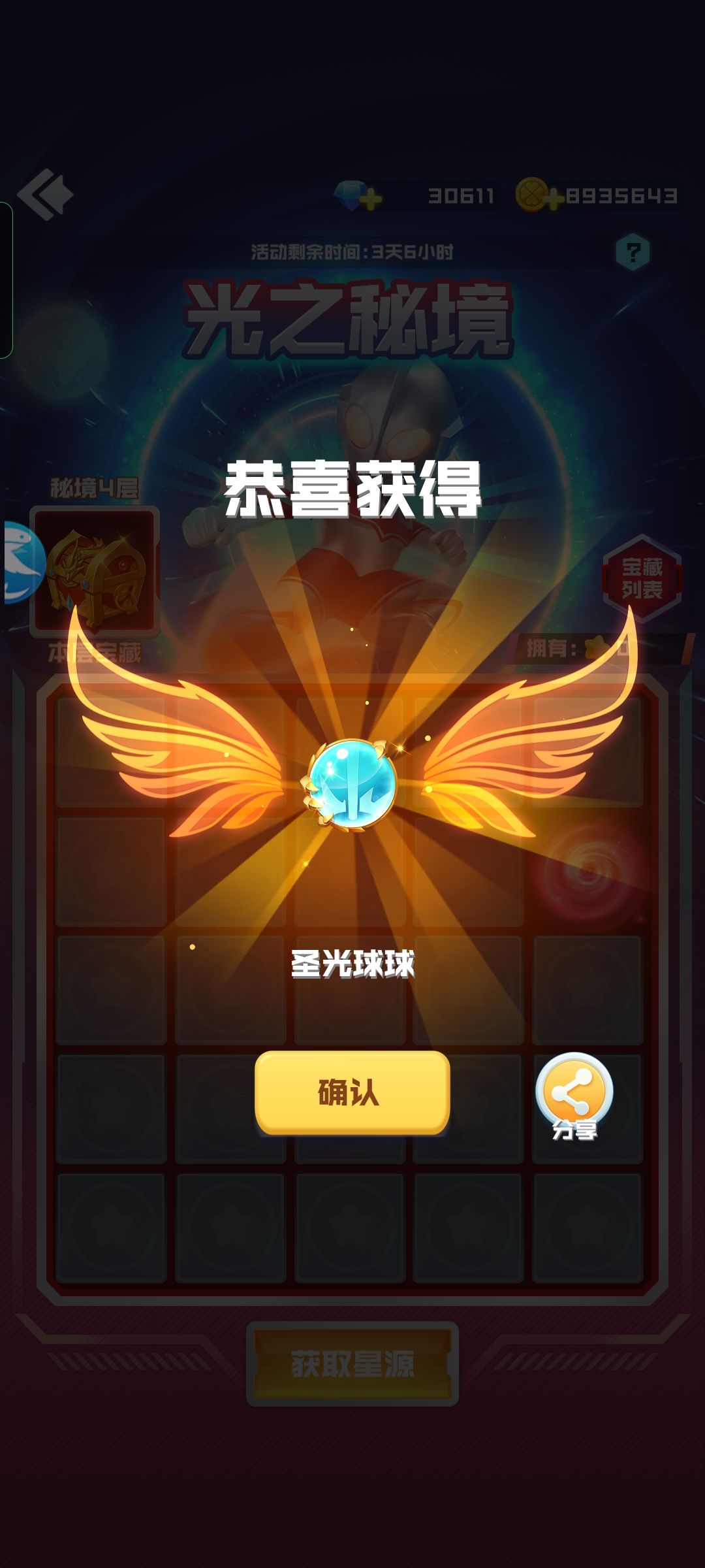 昨天星源探险宝箱开个圣光,今天金币刷个圣光。开心到爆炸!!!