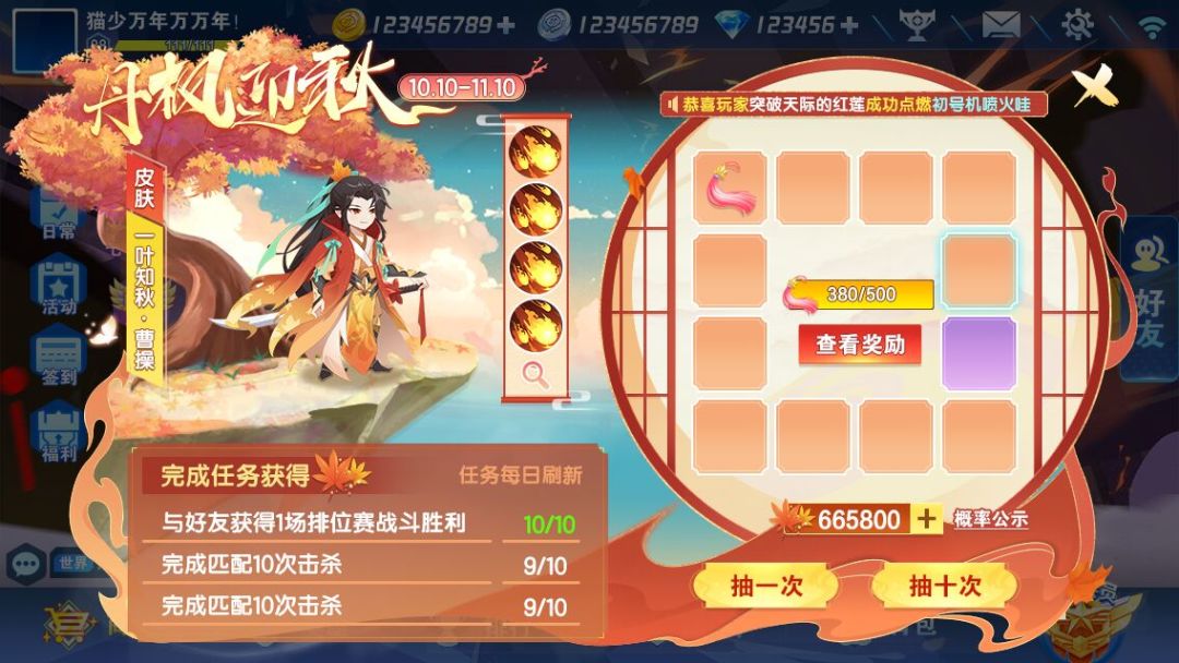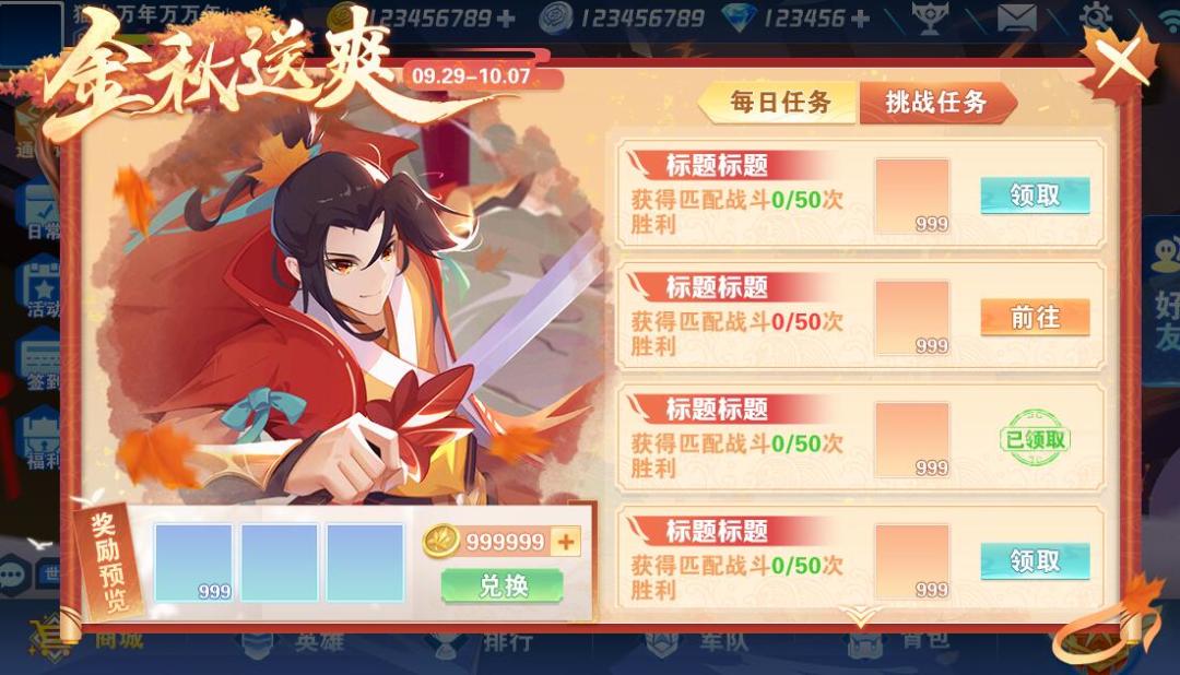 1.【金秋送爽】:活动期间完成任务,领取“枫叶硬币”即可兑换奖励哦!