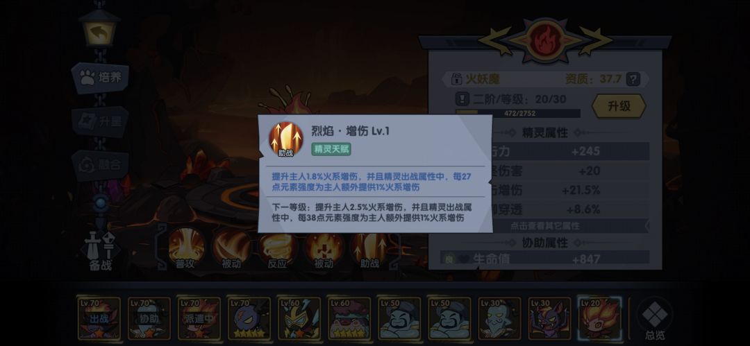 这个助战1级只需要27元素强度就可以增加1%火伤,升到4级竟然需要55元素强度才能加1%火伤了,正常的话应该13-15元素强度加1%火伤吧