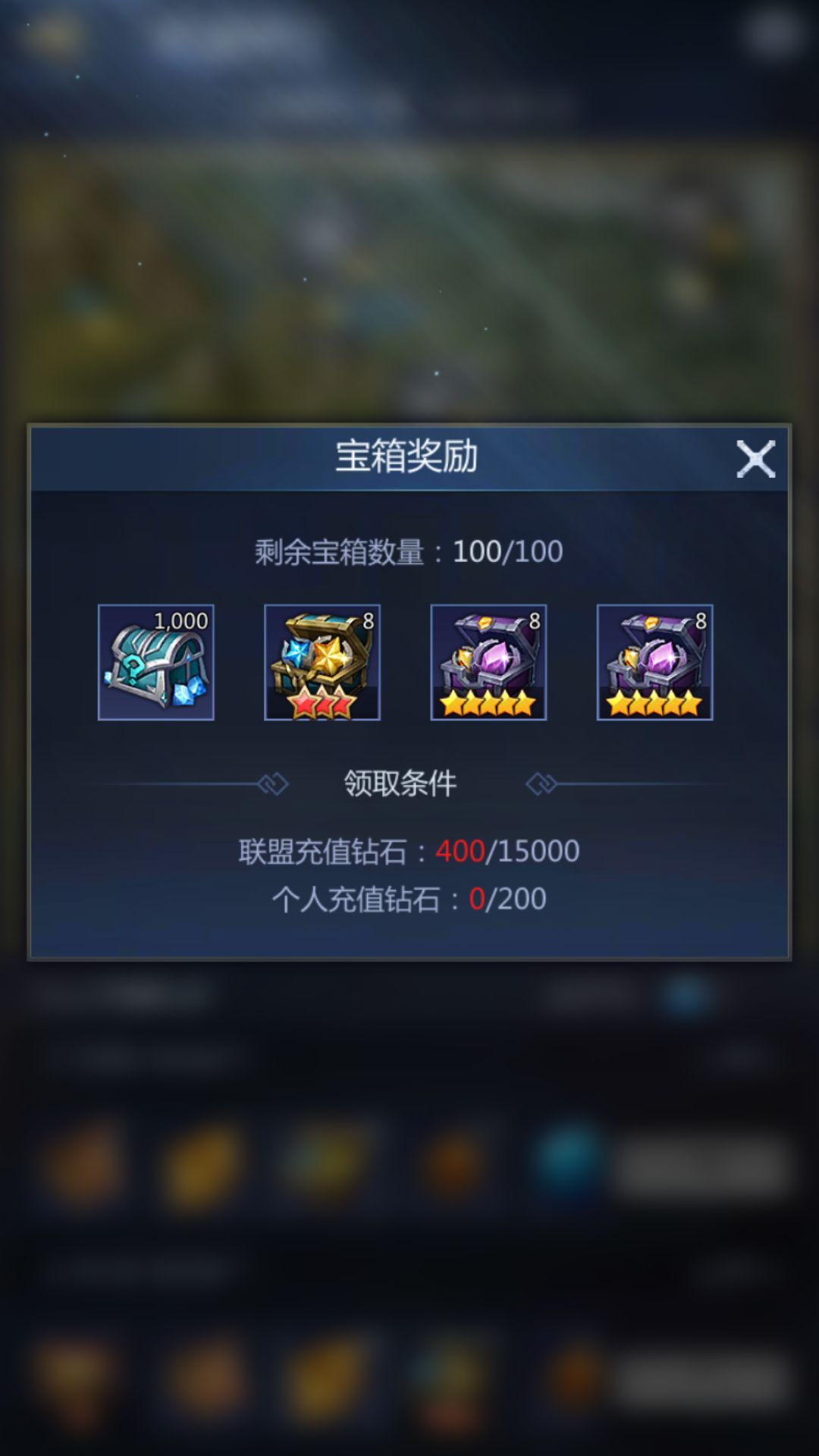 3、每个宝箱都有限定的领取数量,当宝箱被联盟成员领完后将无法领取。
