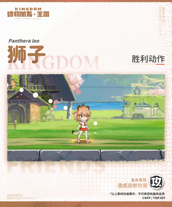 今天为大家带来的是狮子的实装展示哟~性格反差的狮子,在无人时会展现出慵懒的状态,但当其他同伴遇到危险时,狮子「百兽之王」的一面便尽显无遗。