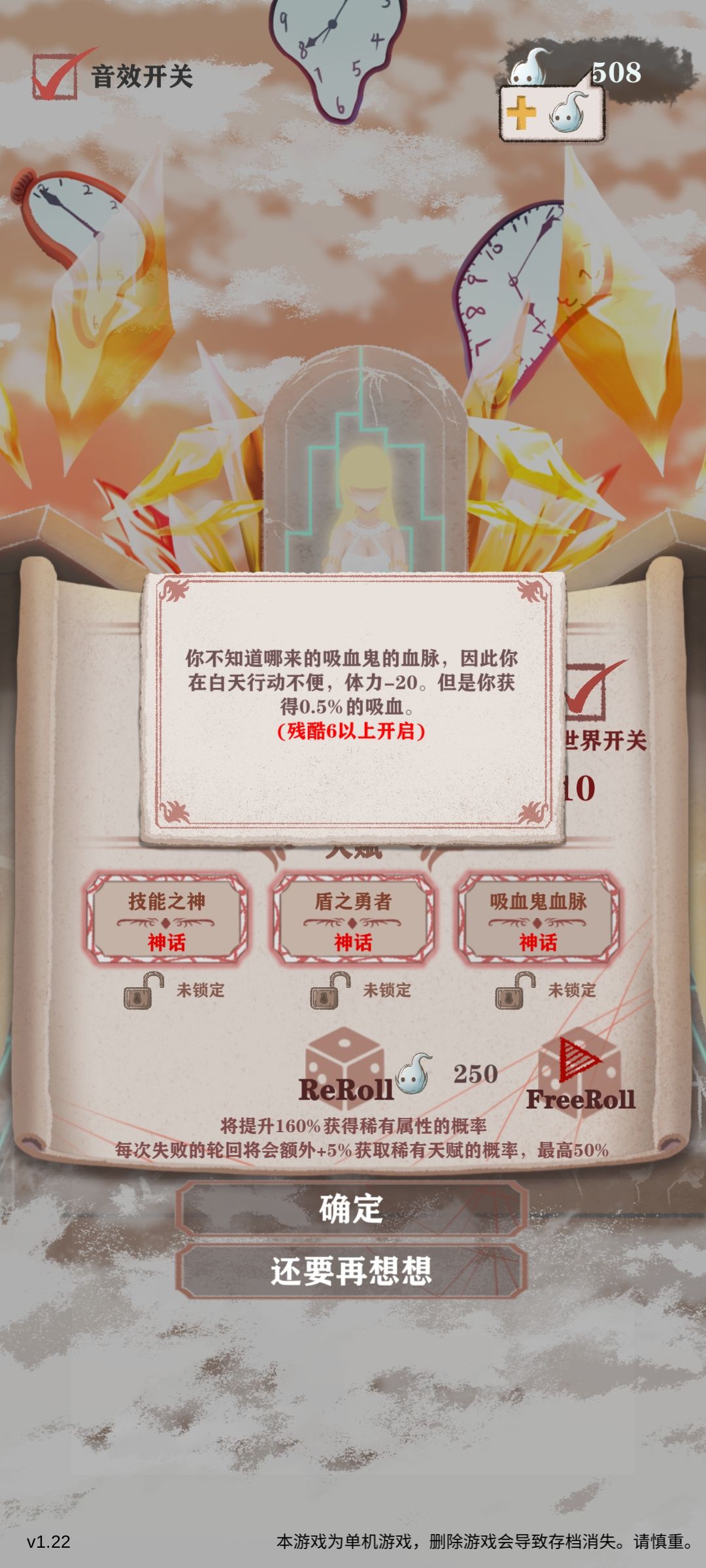 吸血鬼血脉:-20体力的代价非常大,相当于每回合少1.34的属性,收益0.5%的吸血,按正常对局大后期的1000攻击来计算0.5%吸血也就是平a一下回5血,神父给的神器都有平a4回复。收益严重低于损失,严重怀疑作者0.后面多敲了个0
