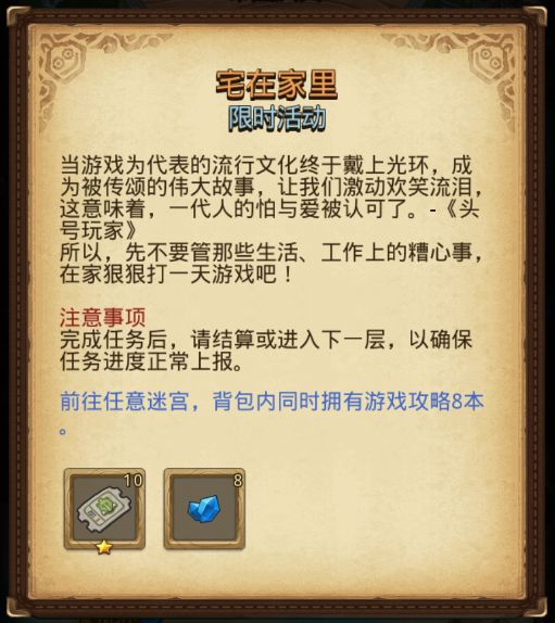 那肯定是先宅家好好放松一下享受一个人的独处时光狠狠的打上一天游戏!在任意迷宫背包内同时拥有8本游戏攻略