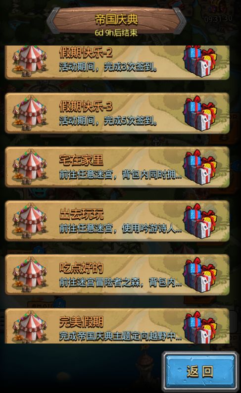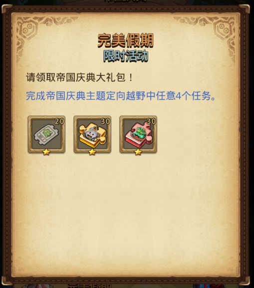 完成上面任务中的任意四个即可获取庆典大礼包!(虽然假期结束了,但是奖励还是不能少的)
