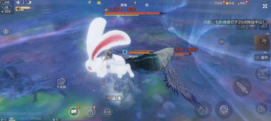 5、鲲鹏的所处位置导致玩家无法在地面与其战斗,这时需要改变战斗思路,切换远程武器进行攻击。