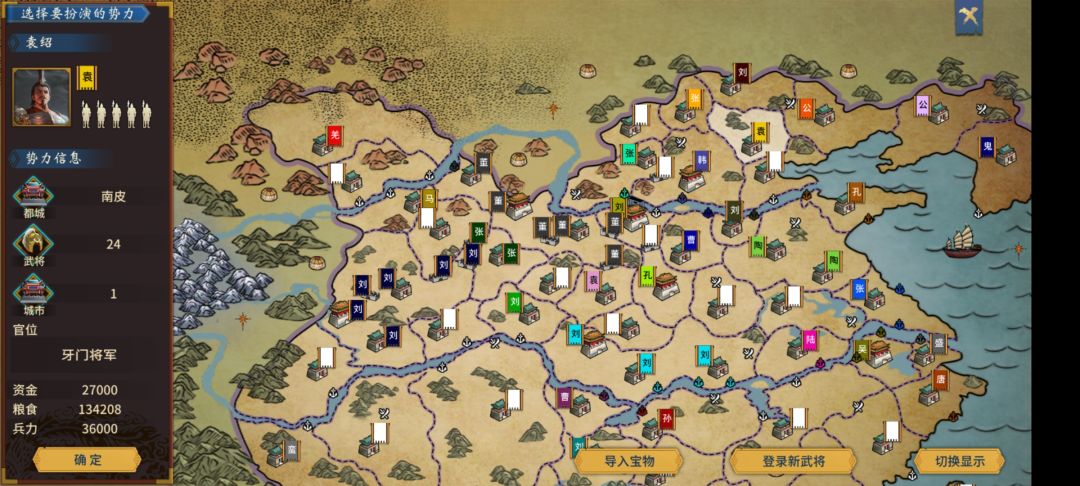 增加张角势力,汉献帝势力,北方羌渠势力,乐浪酆都大帝势力,南蛮孟获势力,夷洲冰阔落势力(看海用)。