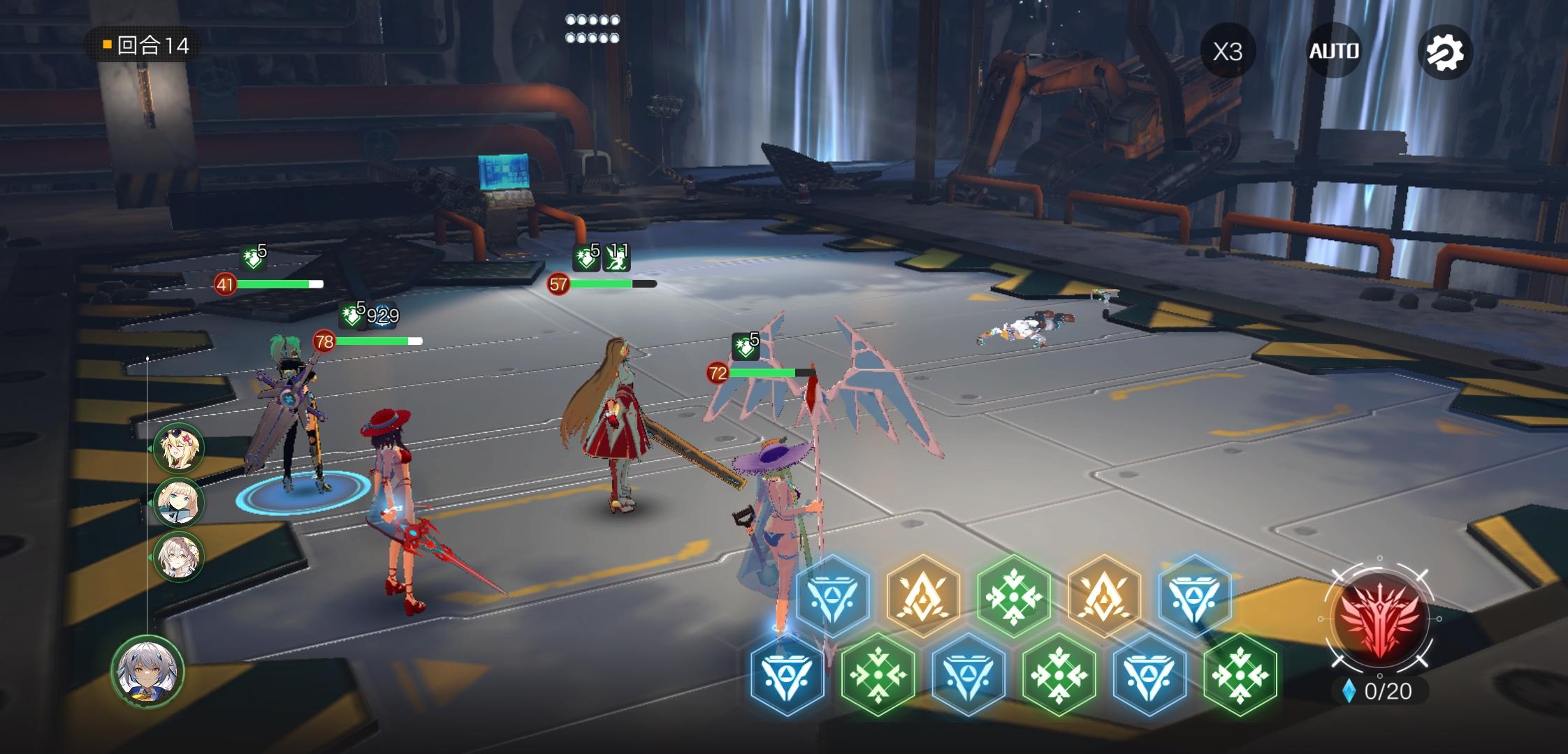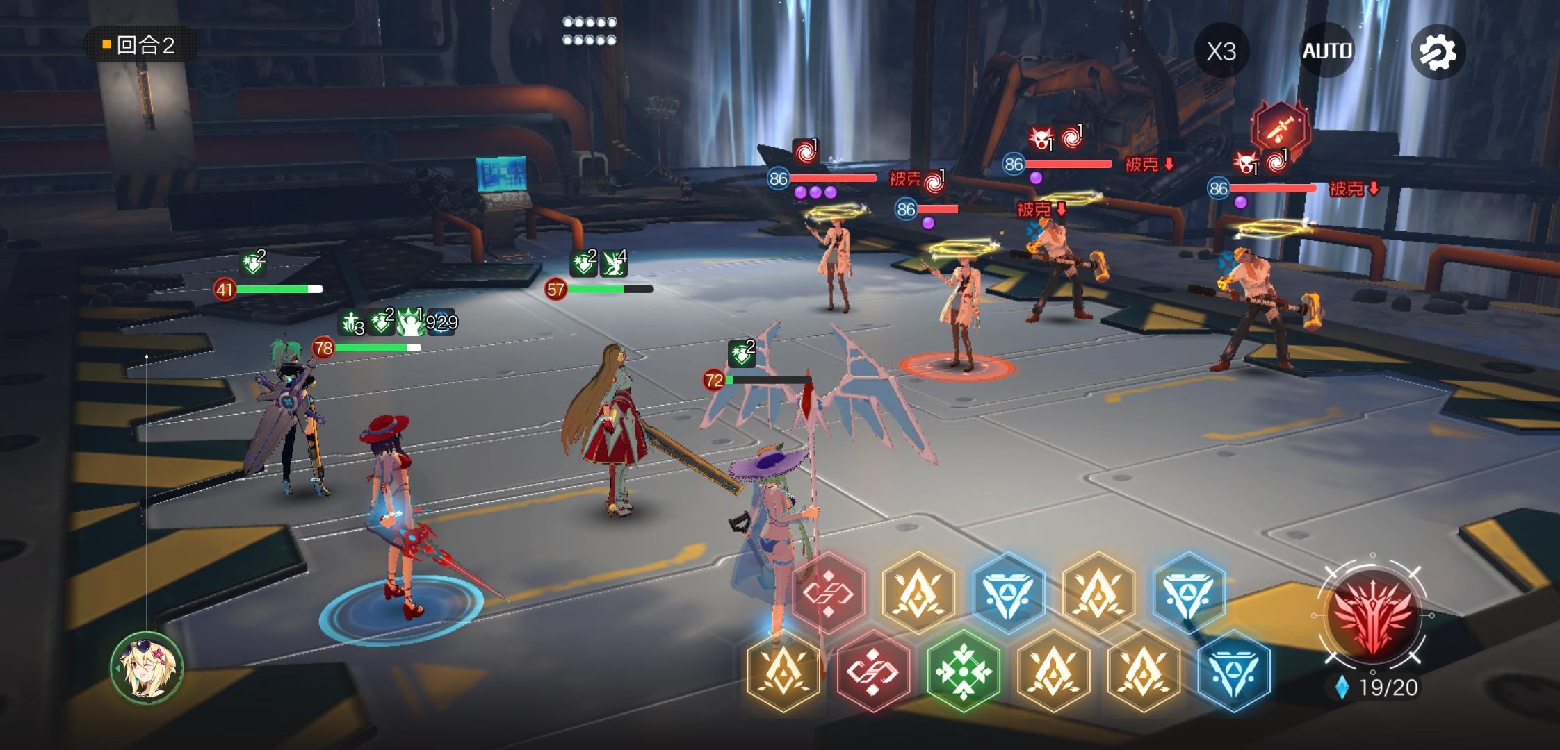 打到这层的时候我本来想看看阿氪不升四阶能不能拼一把,意外发现霍哥晕两次那个血刀怪就会自己挂掉。改变战术,让霍哥开局叠一次二消然后多消都留给她。大帝以奶为主,除非血量都健康,三消后霍哥刚好还能三消,尽可能让霍哥能有机会晕住那个血刀怪。血刀怪死后再以二消为主。