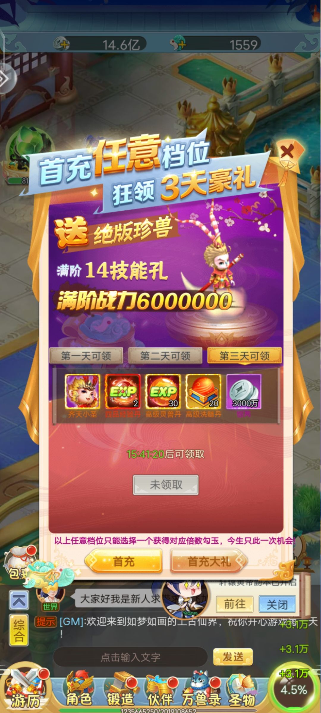 2宠物选择,首充党主天大圣。后面赞钱刷凤凰